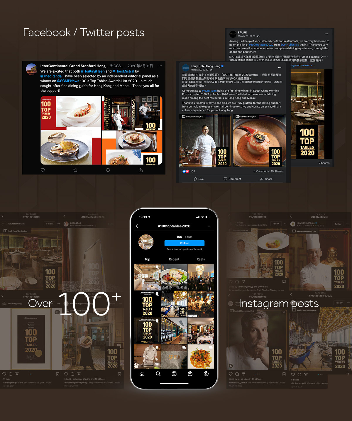 This year 100 Top Tables 2020 launched by online campaign. Though social posts and banners to celebrate 120 winners in Hong Kong and Macau, highlight the contributions of those who have elevated the dining scene.